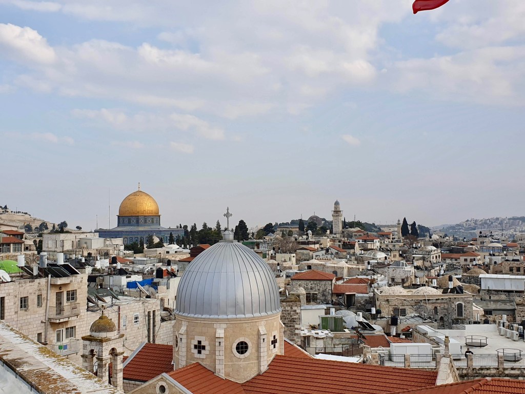 However, arriving at the Wailing Wall changes everything, you can hear the silence and the wailing, mixed feelings I must say, but nice to see. My highlight of the Jerusalem trip was the Church of the Holy Sepulchre, it was unlike any religious temple I’ve seen before. You are walking in a circle and it feels like a museum or a gallery, but better. Another highlight was seeing the people praying, at every spot, at any time, with all of the “tools”. Then, hummus and pomegranate juice stop it was, and off to search for the Austrian Hospice to see the Blue Mosque (Dome of the Rock) from a rooftop. Entering the Dome of the Rock is only permitted to Muslims. But what is a search for a final destination without stopping for a cheese kunefe? Always share it, it is too sweet and one can’t eat one on their own. The view from the Austrian Hospice was amazing, it costs 5 Shekel and it was totally worth it. I think that from here for the first time I could get a picture in my mind of how Jerusalem looks, and it was the first place where I thought how the city seems silent.