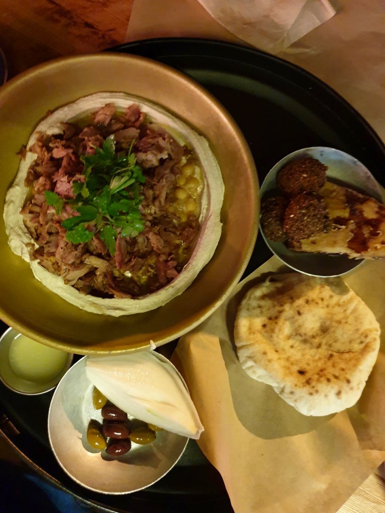 The way back was smooth as well, there are trains every 30 minutes between the 2 cities. After a quick siesta, I had the meal of my life. I could definitely put that on the things you should try before you are 30, and every next day after. We went to the “Magician” – Ha Kosem, the most famous falafel joint in Tel Aviv. I ordered the Hummus Shawarma plate and that was it. I could have skipped the shawarma, because I was full from all the food before. Luckily I didn’t, and that was it, the hummus of my dreams. I am so happy I didn’t end up in a hospital for overstuffing myself. As a side dish they serve aubergine, but it was unlike any other aubergine, I do not even eat aubergine, this was like the zucchini that my mom fries in summer, and sorry but there is no better acknowledgement than that. The magician also has a book “On the hummus Route”. While I was waiting in line, I was going through its pages, it is amazing, so someone is getting it soon. Either me or someone close. Did I mention that while you are in line a basket of falafel goes from the first to the last person in line and back. So no wonder how everyone is overstaffed.
