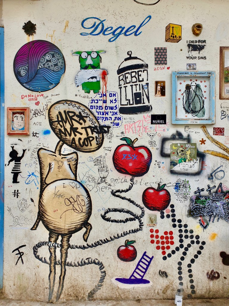The flight from Berlin to Tel Aviv is about 4 hours long. We arrived on Saturday around 6PM. Saturday is the Holiest day in Israel – Shabbat, and everything stops then. By everything I mean that there isn’t even public transport till the evening. Busses Start at 7PM and the trains at 9PM. So, if you arrive on Saturday and you are in a hurry, taxi will be the only option, but it is 10 times more expensive than bus/train. The bus wait was reserved for the ATM, and there was only one open shop, a bakery, so rugelach was a must. Actually two. We managed to enter the bus. I really mean managed, because people are not waiting in line, rather in a circle, and when the bus is full, that’s it -the next one is in one hour. The ride was quick, due the fact that the roads were empty, and the bus stop was 5 minutes walking from our AirBnb. Our host was a great young guy that voluntarily shared some places with us. Guess what, 90% of them were already on my list.