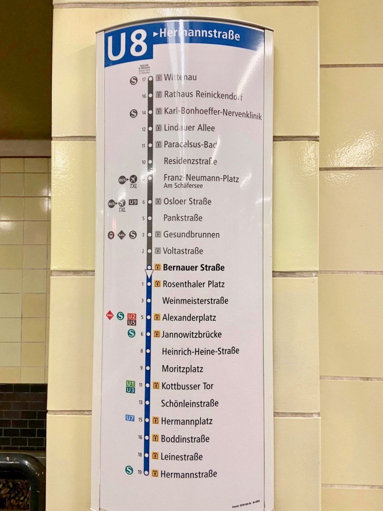 If you want to arrive to Mauer Park or the Berlin Wall Memorial this is the station you need. Reaching this station, you are also reaching many picturesque areas and streets as the Arkona Platz (that also has flea market on Sundays and food market on Fridays), the famous Strelitzer Straße, serving you very clean view of the TV Tower, and Anklamer Straße.
