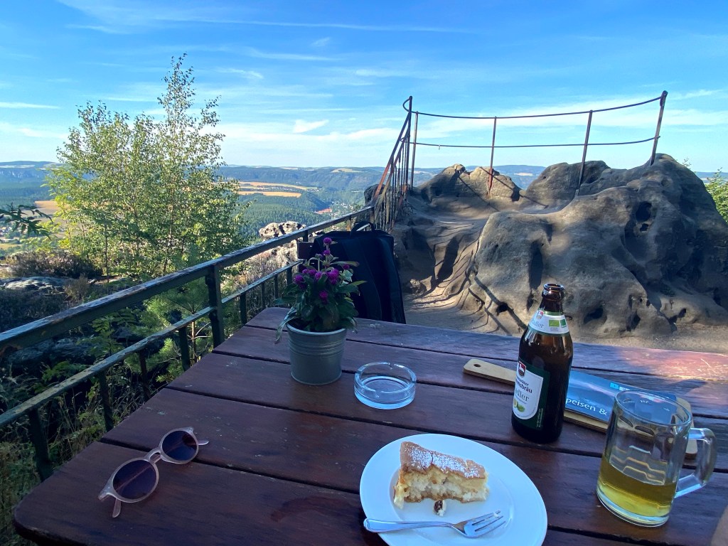 The next even more rewarding stone was the Papsttein restaurant – Berggast (Mountain Guest), and traditional egg cake. Also traditionally amazing view. And traditional question, how much more? No one gave me that answer.