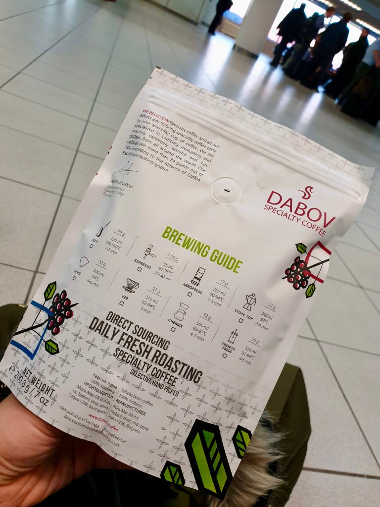 My stroll continued towards the tram street, which was giving very retro vibes, and I stopped at a greek bakery – Kostas. I remember my spinach pita being amazing. Then I went to check a specialty coffee shop, named Drekka, it was very interesting minimalistic store, and the coffee was great. Then off to little souvenir shopping I strolled to the Levski boulevard, and bought coffee from Dabov.
