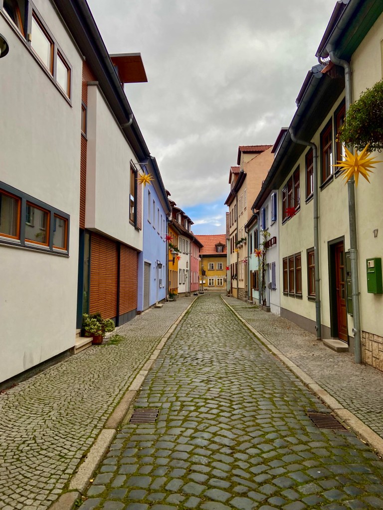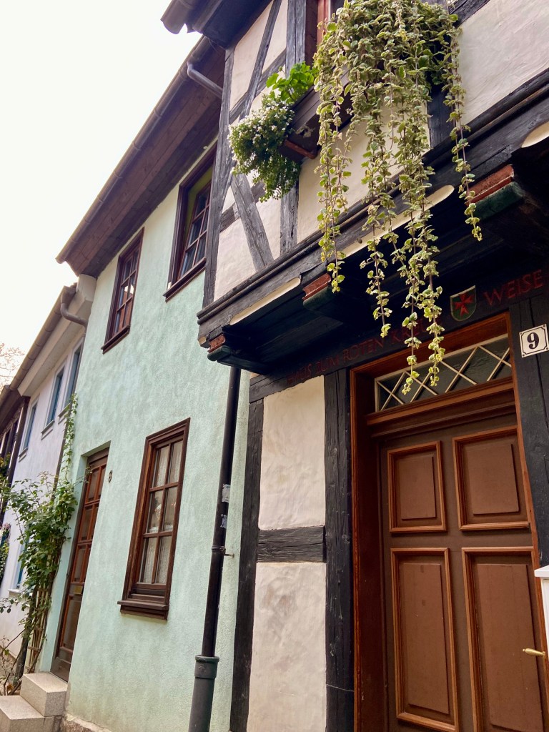 The tiny alleys were amazingly decorated and they were giving some very cozy vibes. We also admired the canals of Gera river but even more the tiny Kirchgasse alley. This is romantic and very picturesque spot. It is right next to the Augustin Monastery. The walls in the alley are so high because it was believed that people shouldn’t look in the monastery.