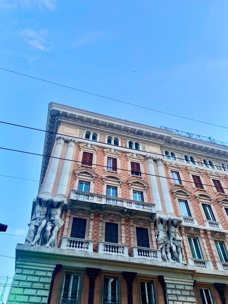 Type of accommodation as I like the most with contactless check in, looking directly at the sea, and with the greatest window blinds, because if they were not existing, you would feel as if you sleep with a motorcycle. One swim at the beach in front of the door, then a bus ride to the city center, pizza Genovese, not worth the one hour wait, and being in awe how huge everything is. I was also in awe of the beauty of the Piazza De Ferrari.
