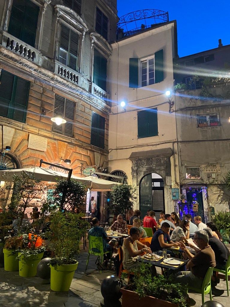 The night was for exploring the city, this time also the area around the harbour, which was not my favourite I liked the new area better, the tiny streets with bars and restaurants, and the Ferrari Piazza especially. The harbour area felt more touristy, but also dark, so we went back to the bars around every corner spot and first wanted to check out two very Genoa restaurants, but no reservation means begging for place. We ended up at a Toa da Zena, amazing food, and hosts and didn’t regret it even for a second. Then the options for after drinks were endless, but we settled for the Morretti bar, and enjoyed the night with the almost under aged locals.