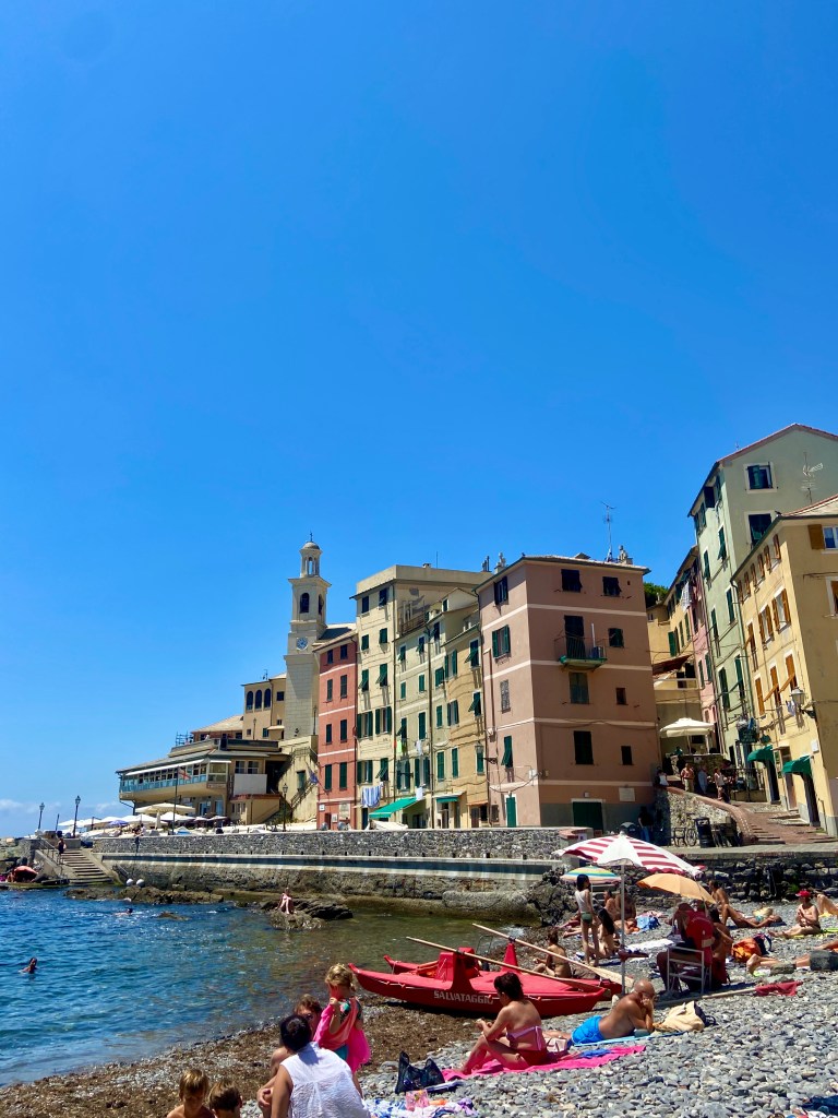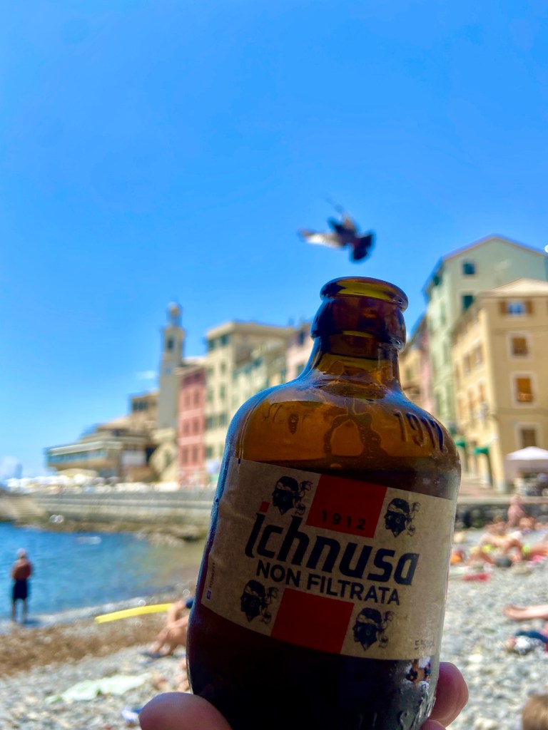 One of the best beaches in walking distance was the Boccadasse beach, I still don’t get how people survive without umbrellas the whole day, but not my problem, and the sights are amazing, I had the impression I was part of the animated movie Luca. While having breakfast I learned my new favourite Italian word “spremuta” – meaning squeezed, the old favourite was “allora” – something like well or let’s see. There was one centimeter of shadow at the beach, and I made sure it belongs to me. In the small suburb of Boccadasse, there are plenty of food options, even more modern ones as craft beer and burgers, but also the usual focaccia and mix of fried vegetables and fish.