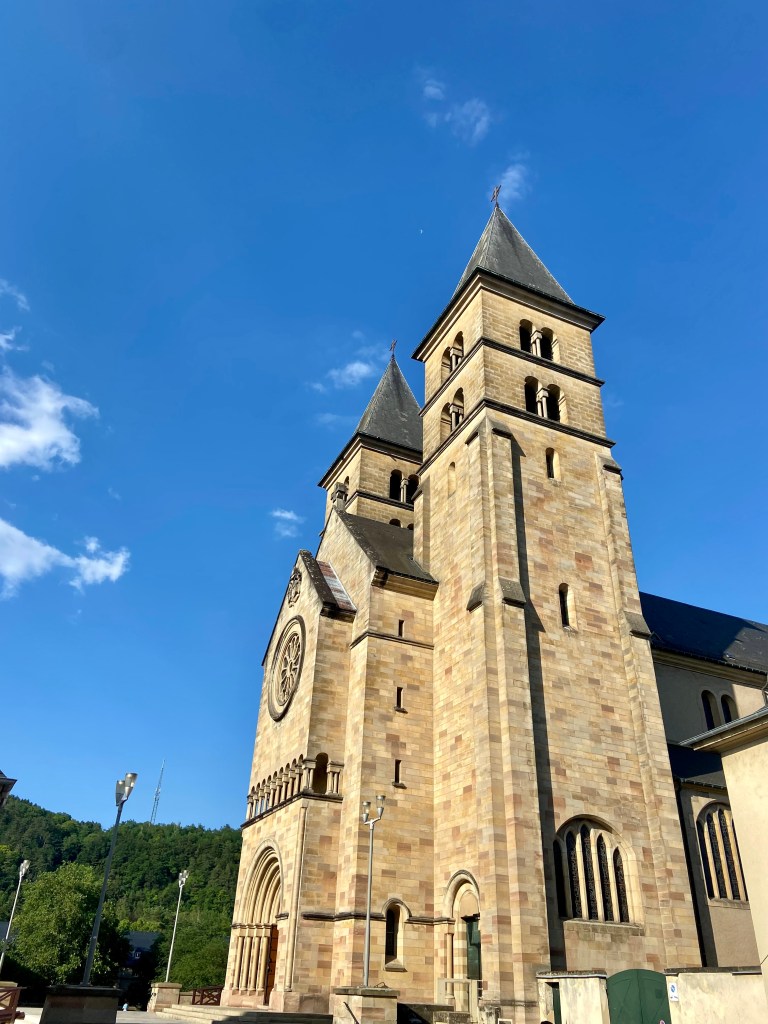 And now about the routes we took. Since we arrived around 3pm on our first day we decided for a shorter route and about 35K steps. We followed the B2 route from Berford to Eschternach, a town on the border with Germany. The hike was super picturesque and calm and most important for me 99% of the time in a deep shadow. Eschternach had quite nice old town, and it is most famous because of the Abbey dating from the 7th century, and because it is the oldest town in Luxembourg.