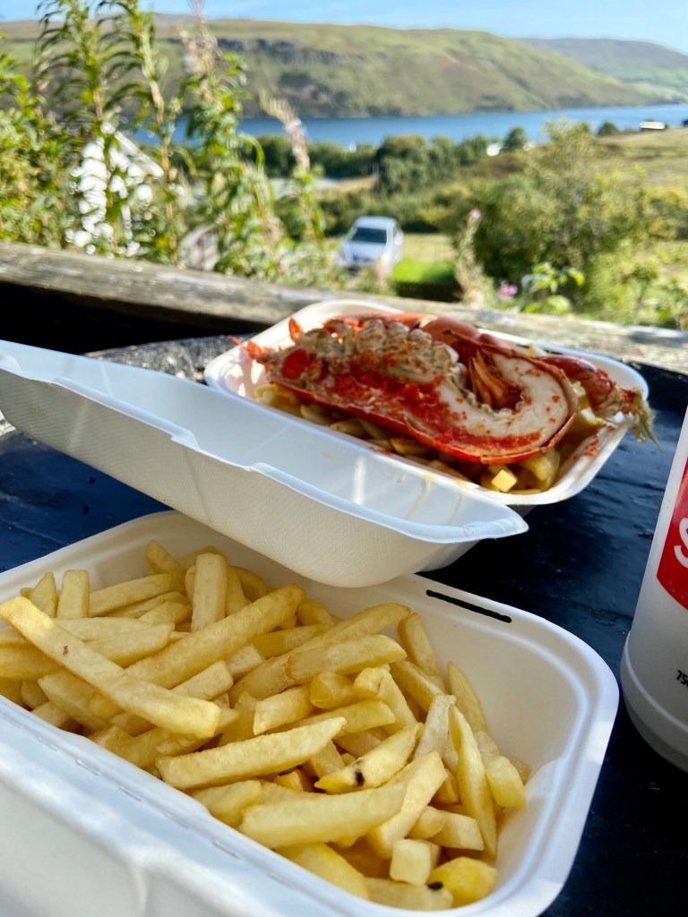 Once we woke up, the first stop was the Glendale community hall, it would have been nice if the Lephin Cafe was opened, but instead we continued to Caora Dhubh coffee shop. It had amazing views, to my dissatisfaction, only sweets inside so I had to use the house kitchen again. Then we had a look at the Talisker Distillery right across, but ended the visit of The Oyster Shed. A shed with should i mention again amazing view, amazing offer of local product, grilled lobster, and many other fishy things, I would have say perfect ending, but we stopped on a few more spots. First at the lodge on the Loch, for some beachy vibes, then again to Distillery 57 for souvenirs and finished Skye’s visit at Lean To Coffee, specialty coffee spot with great baked stuff, and even cuter interior/exterior.
