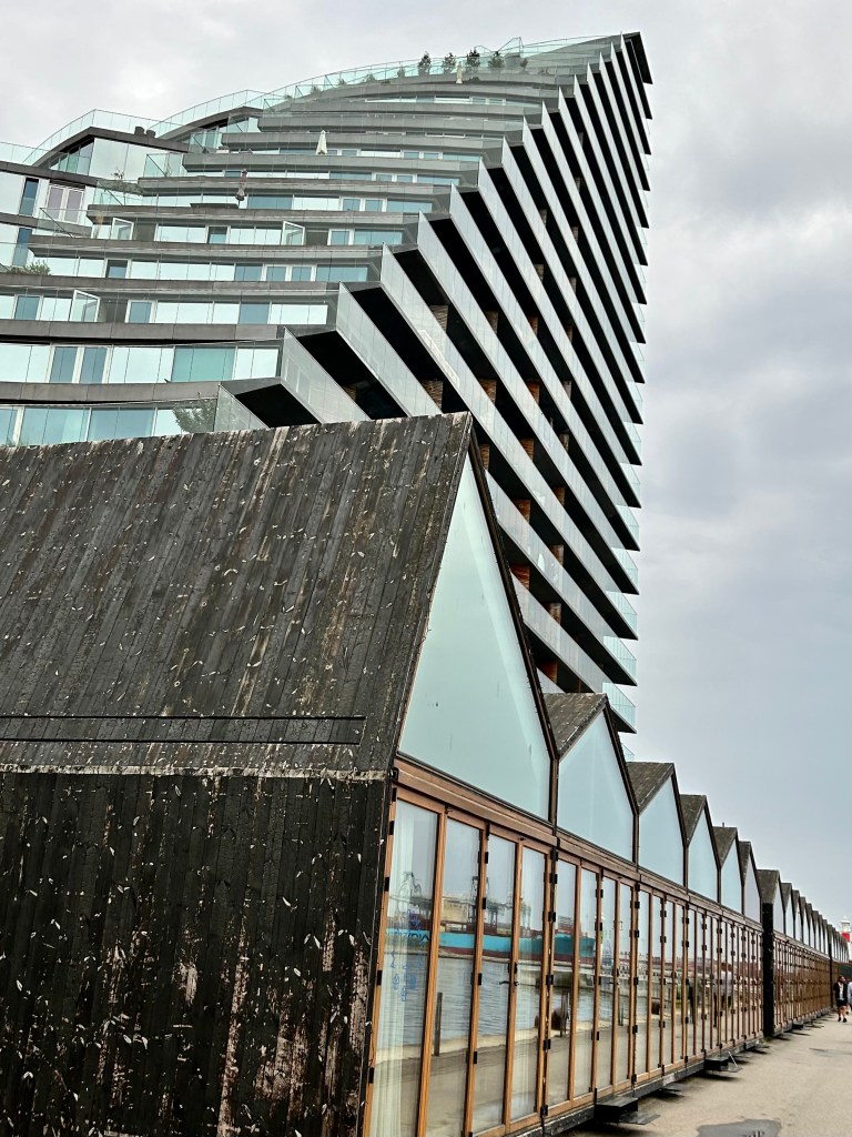 The second part of the working day was reserved for the docklands area, a real gem for architecture lovers, as it has all the shapes and forms of buildings, from old to new, from Icebergs, squares, to lighthouse buildings, to tiny houses which can be rented out via airbnb. There was also the beach front, wakeboarding and a food market. Since it was raining all of the people were here in the Nicolinehus Food Market.