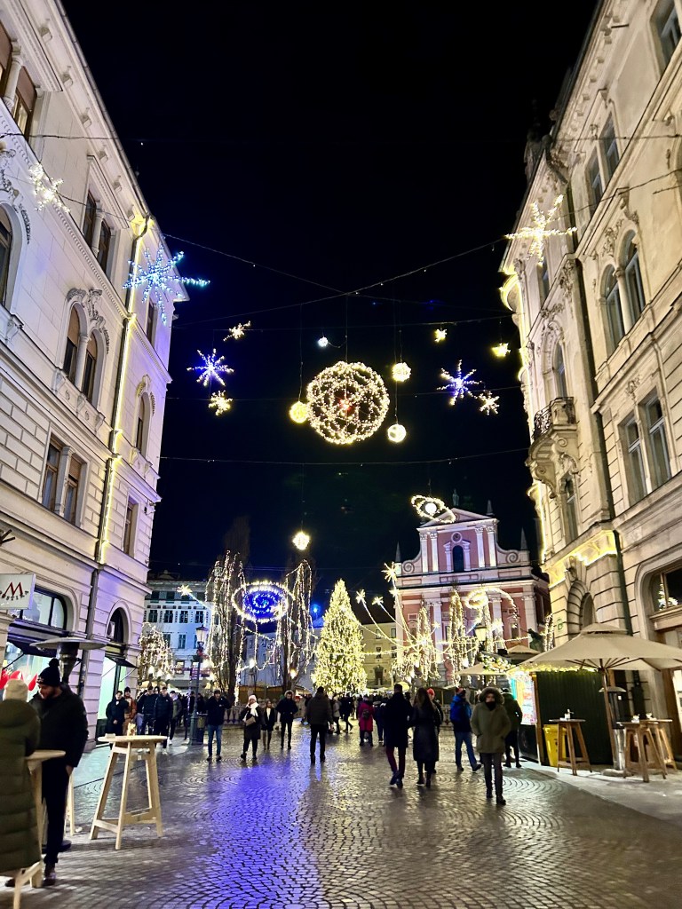 Ljubljana is famous for their weirdly decorated christmas Lights which always have two connotations, Christmas one and a bit on a sensual-sexual size one.