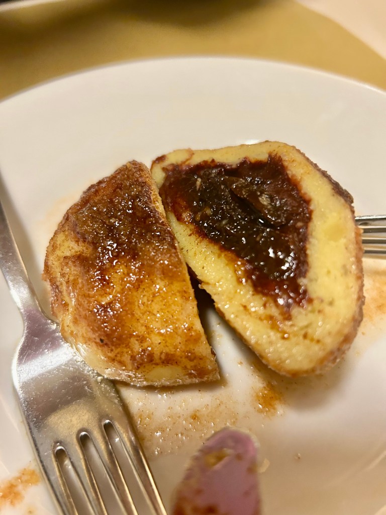 The food in Turin reminds more of the food in SLovenia rather than what we know as typical Italian food. A lot of cooked meat, beans, cabbage. And the best of all the sweet plum dumplings, it kind of fit this cold windy weather.
