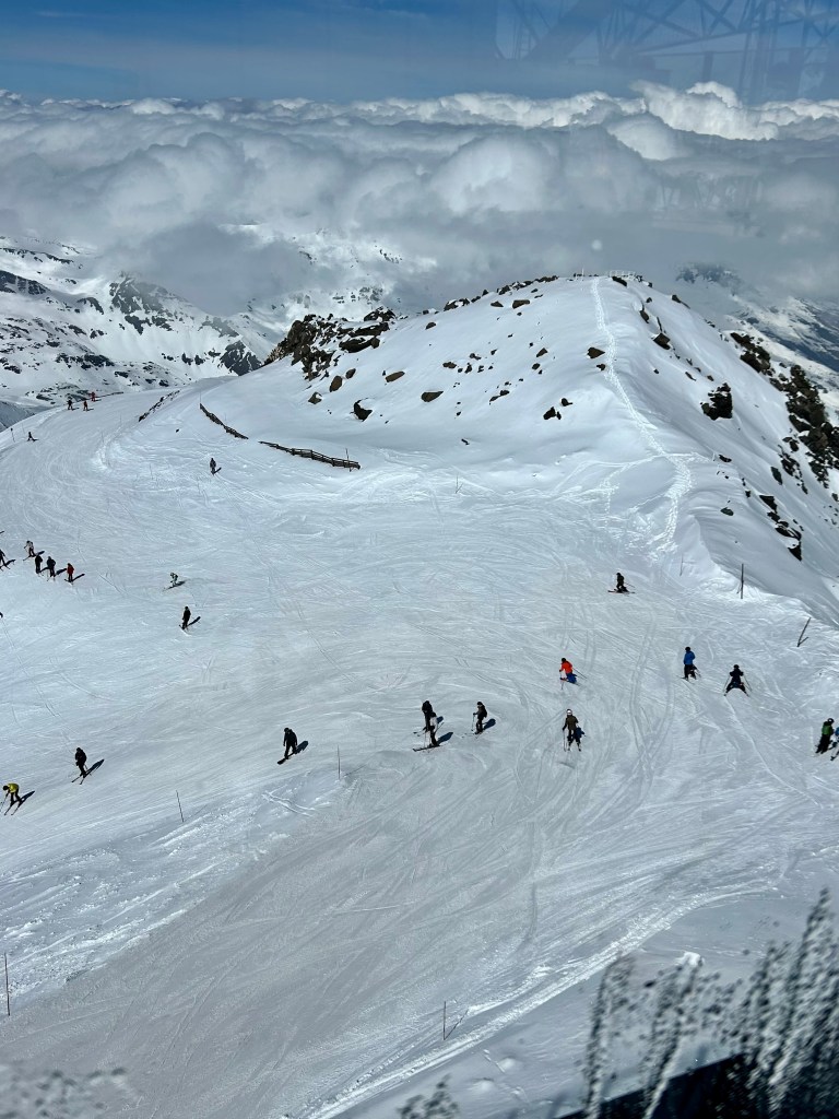 One of the best excursions for me was going to the Cime de Caron summit. Officially home of the biggest cable car in the world, but even though closed, there is another way to reach it through Orelle. The visitors center consist of restaurant, roof top bar, a store and exhibition space,and it has amazing views. AS well the slopes on this side were much less crowded compared to Val Thorens and Meribel.
