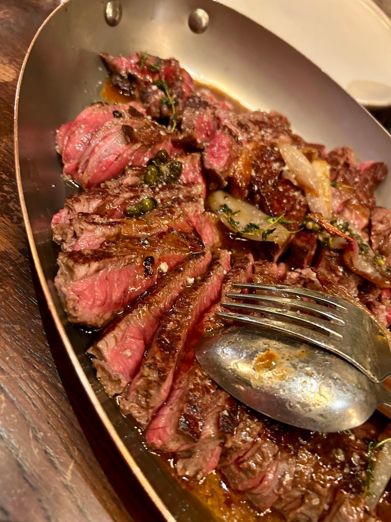 Eating out except on the slopes was weirdly not part of this trip. Usually we are all about eating out. We had the feeling we’ve tried it all from the Savoyard cuisine. However, the last day we decided to have an honest steak. We went to La Maison for the cut of the day.